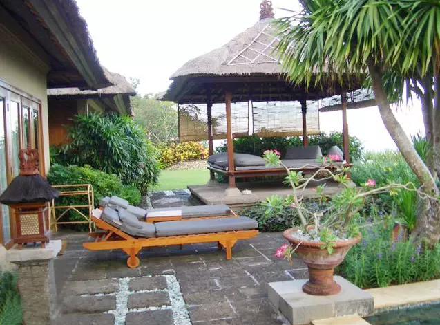 花園水景、游泳池、瀑布、噴泉,還有磚紅色的陶盆、陶罐、水缸等,雕塑花園,種有蓮花或百合的水院,以種植花卉為主的花園、巴厘亭閣,蓮花池畔的亭閣、茅草屋頂、木材 、大量熱帶植物以椰子樹為主。