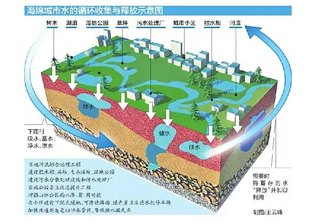 海綿城市是指城市能夠像海綿一樣,在適應環(huán)境變化和應對自然災害等方面具有良好的“彈性”,下雨時吸水、蓄水、滲水、凈水,需要時將蓄存的水“釋放”并加以利用。