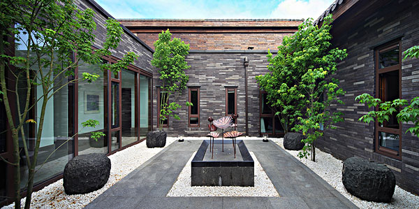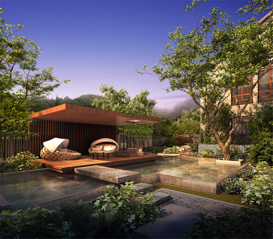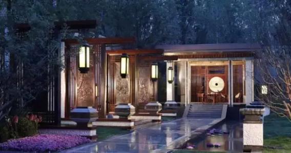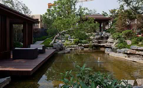中式庭院營造禪宗的空靈、清遠,是靜穆、深邃、幽僻。中式庭院景觀以水景為中心,水景及假山仿佛能濃縮自然千山萬水之景象,幾塊山石前簇后擁,白砂一片,綠苔在青石上,白墻上婆娑著竹影,文雅娉婷的竹子,是中式庭院的主體植物,植在小徑邊,植在粉墻邊,與竹燈與石燈相映增加自然朦朧的禪意,草種在石縫中和山石邊的,營造大自然郁郁蔥蔥的綠意,樹是刻意挑選幾棵珍稀吉祥之木,置于園中。