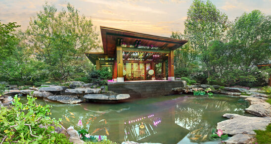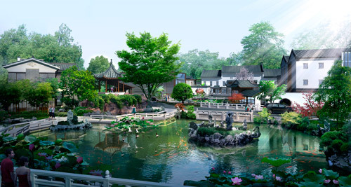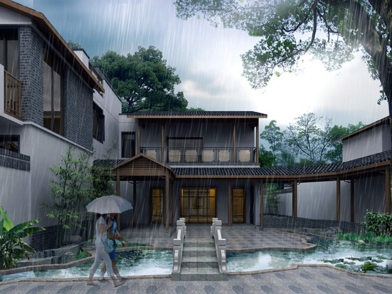 精心和細致也培養(yǎng)了觀者的敏感和多情,有太多的細膩的場景片斷,把墨綠的松針擺放在石板地上,聚散有致,一株紅楓在竹林深處,井邊石頭包上了厚厚的茸樣的青苔,細流潺潺從竹槽中流入井中,顏色深重的石井,水中浮著幾片落花。某種種細微而注重細節(jié),達到藝術化近極致的程度,這種對自然的提煉,使中式庭院景觀產生了深遠的禪意。