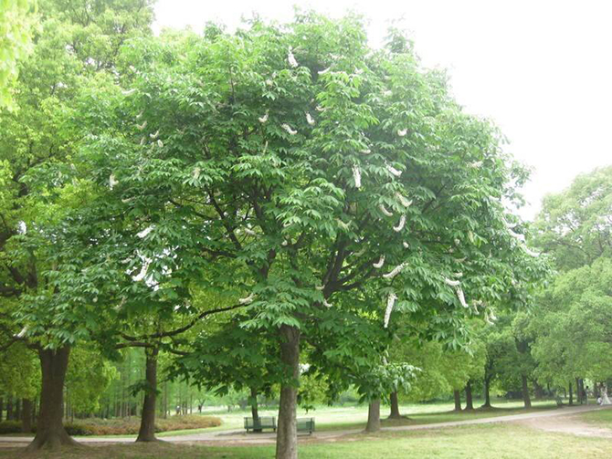 歐洲七葉樹為落葉喬木,世界四大行道樹之一,樹體高大雄偉,樹冠寬闊,綠蔭濃密,花序美麗,小枝幼時有棕色長柔毛,后脫落。冬芽卵圓形,有豐富樹脂。小葉無柄,倒卵狀長橢圓形至倒卵形,基部楔型,先端急尖,葉邊緣為不整齊重鋸齒,背面綠色,幼時有褐色絨毛?;ㄝ^大,淡玫瑰紅色,頂生圓錐花序。蒴果近球形,果皮有刺,喜光,稍耐蔭,耐寒,喜深厚、肥沃而排水良好的土壤。
