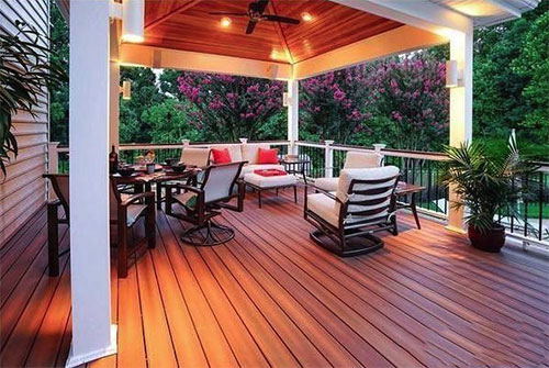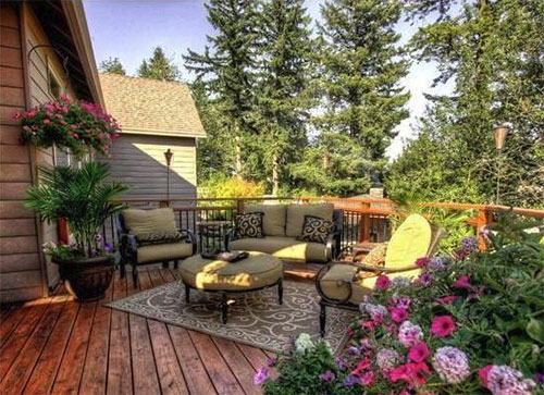 地板上鋪上防腐木或者復合木材,作為房子擴展生活的空間,種上花和植物變成后花園,春天來臨時花兒盛開非常漂亮,而且還有撲鼻的香味,給我們帶來美的享受。