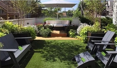 種上草坪、花、植物,再擺上凳子,配上一把遮陽傘,就成了休閑的好地方。