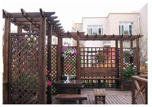 3、水是很多花園設(shè)計(jì)里不行缺的精靈,它可以與別墅花園中的統(tǒng)統(tǒng)元素共同構(gòu)成一幅優(yōu)美的水景圖。而木料在家庭庭院中可以說是起著點(diǎn)睛的作用。戶外家具,花槽、花架、秋千椅、圍欄,無論用在庭院中的任何角落,它都市給人創(chuàng)造一種溫馨、安寧、自然、和諧的氛圍,滿意人們對自然回歸的急迫渴望。