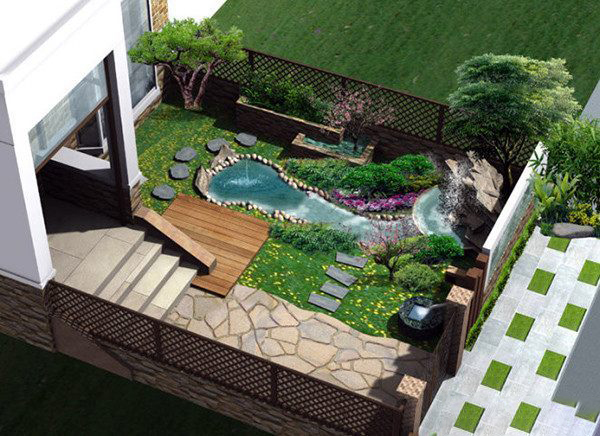 郁郁蔥蔥的樹木環(huán)繞著中式個性的花園別墅,豐富的層次感讓個性的別墅花園設計生動形象,生機勃勃的綠色植物在呼喚著生命的活力,別致的實木涼亭隱約的佇立在叢林中,優(yōu)雅的小巧妝點出悠揚的水池,靈動的魚兒為私家花園別墅帶來生氣。