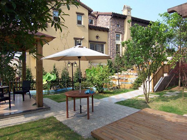 復古的個性的花園別墅設計風格讓人回憶起美妙的往事,古樸的設計帶給你悠遠的歷史感受,跟隨神秘的腳步來到個性的別墅花園設計的休息娛樂區(qū)域,民族風情的藤藝沙發(fā)搭配舒適的坐墊,濃濃的溫情感染你我的心,做舊的木箱是休息區(qū)的茶幾,同時擁有強大的收納功能。張揚的綠色植物點綴出大氣的花園環(huán)境。