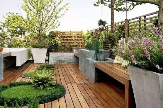 防腐木也是室外裝飾的重要材料,腳感非常舒適,經(jīng)過特殊處理的木材使用壽命也較長。不僅地面可以采用防腐木來裝飾,甚至可以用它來搭建長椅、小亭子等,帶來別具一格的別墅小花園。