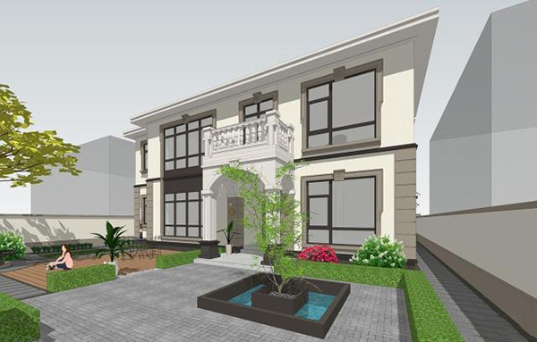 在建筑的裝飾細節(jié)上,也充分運用了歐式元素,人字頂?shù)拈T頭,帶有歐式線腳的窗套,以及護欄上使用的花瓶等,使整個建筑擁有了更加統(tǒng)一的歐式基調(diào)。