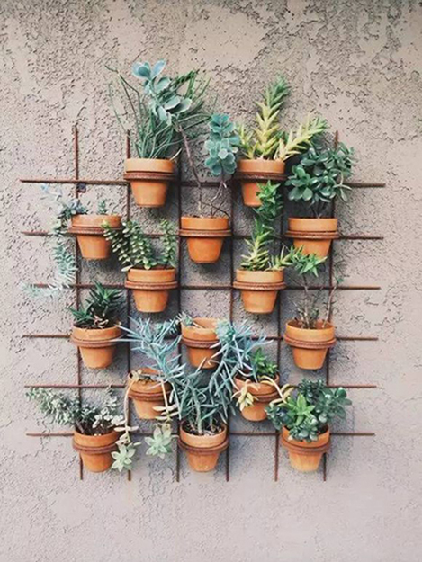 誰(shuí)說(shuō)盆栽只能放在桌子或者地面上的?除了這兩個(gè)地方,你還可以把它們掛在任何一面你能看見(jiàn)的墻上。比如你可以模仿綠籬上的藤蔓植物,把它們掛在柵欄上,同時(shí)掛花盆比種植綠籬更加方便和快捷。