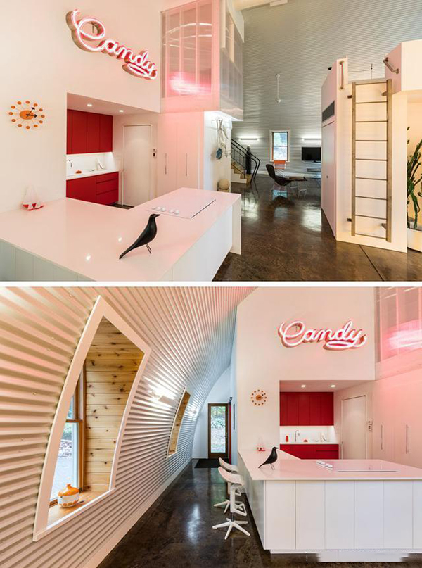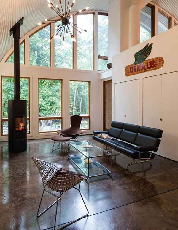 該小屋位于紐約雅閣,最初作為輕鋼型別墅,然后組裝成一個開放式谷倉。這是一個現(xiàn)代化的輕鋼型別墅,把谷倉作為造型靈感來進行裝修設計,經過裝修設計已經變成了一個逃離城市的最佳居住地。