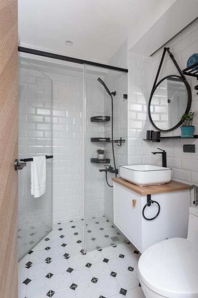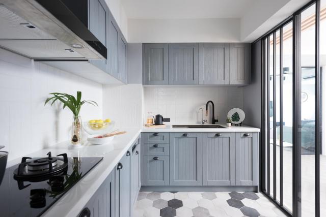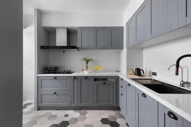 廚房中設(shè)計(jì)了整體櫥柜,地柜和吊柜非常漂亮,讓廚房的環(huán)境變得干凈又整潔,安裝的櫥柜有很多的收納空間,功能布置也非常合理,不僅如此,地面的瓷磚使用了六邊磚,非常的時(shí)尚漂亮。