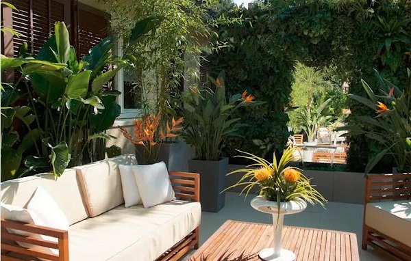 采用高大的植物,創(chuàng)造出外人難以窺視的空間,擺上柔軟的椅墊抱枕,陽光下令人好想沈沈入夢