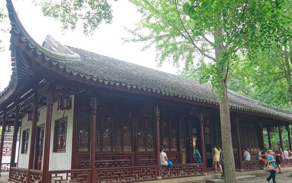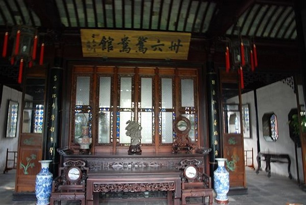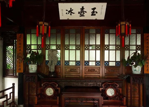 海棠春塢旁的“玲瓏館”,室內(nèi)懸掛“玉壺冰”匾額,取自南朝宋鮑照的詩(shī)“清如玉壹冰”。 室內(nèi)陳設(shè)雅潔大方,為江南廳堂的典型。