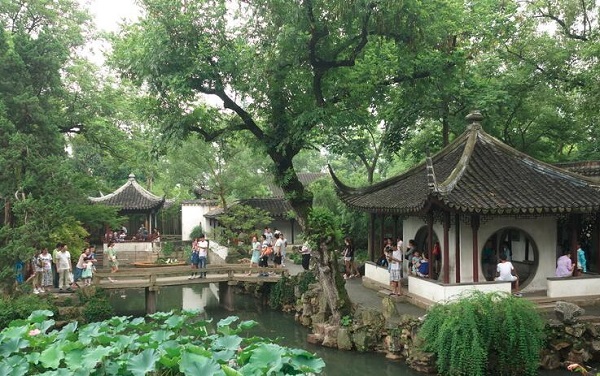 拙政園以池水為中心,樓閣軒榭建在池的周圍,其間有漏窗、回廊相連,園內(nèi)的山石、古木、綠竹、花卉,構(gòu)成了一幅幽遠(yuǎn)寧?kù)o的畫面,充分表現(xiàn)中國(guó)山水園林的最高境界,被譽(yù)為“天下園林”。這座大觀園式的古典豪華園林,居鬧市而能延續(xù)其山水風(fēng)格長(zhǎng)達(dá)五百年,相當(dāng)罕見。
