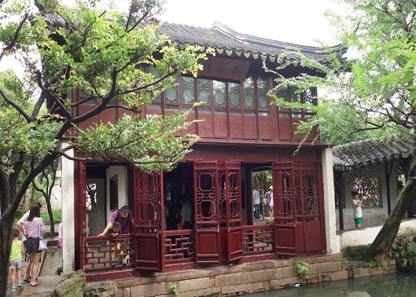 中園的主體建筑為“遠(yuǎn)香堂”, 是一座四面廳,原為清朝乾隆時(shí)期的“若墅堂”, 四面廳臨水而建。