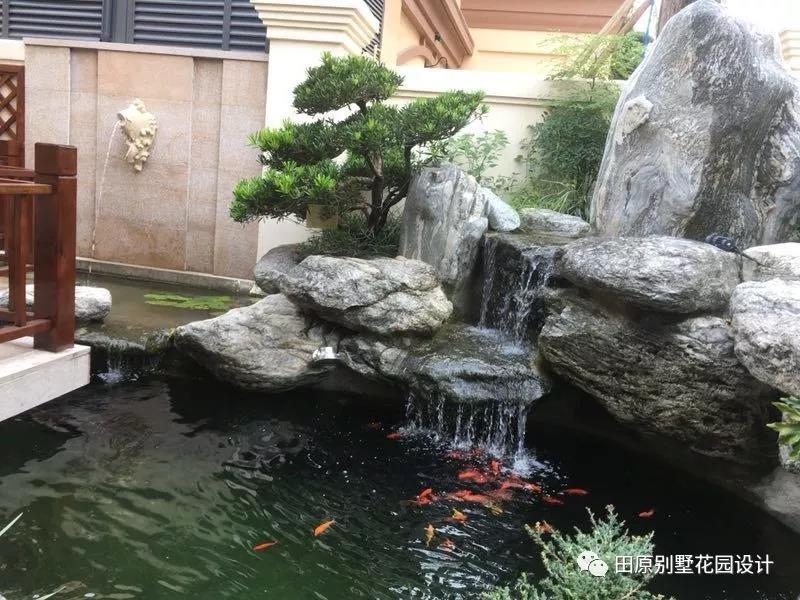 智者樂山,仁者樂水。古詩(shī)云:山不在高,有仙則名;水不在深,有龍則靈。自然山石精心打造的假山錯(cuò)落有致,形態(tài)迥異又不失趣味的疊石之山,搭配著周圍的綠植小景,假山旁站立羅漢松,蔥翠清雅,蒼勁高潔。朝而往,暮而歸,行者休于樹,漸聞水聲潺潺而瀉出于石峰之間,臨溪之魚,溪深而魚肥。有山,有水,有魚,有花的庭院想想就覺得特別愜意。