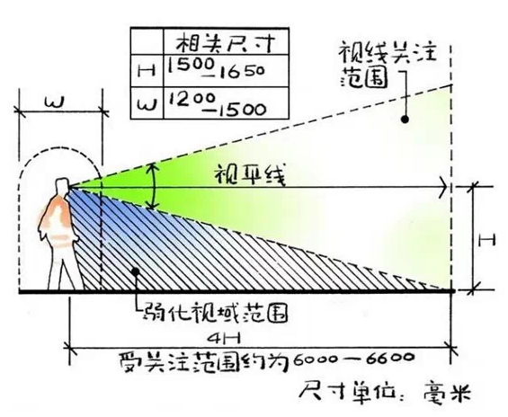 人眼關(guān)注的范圍大概是視點高度的4倍,