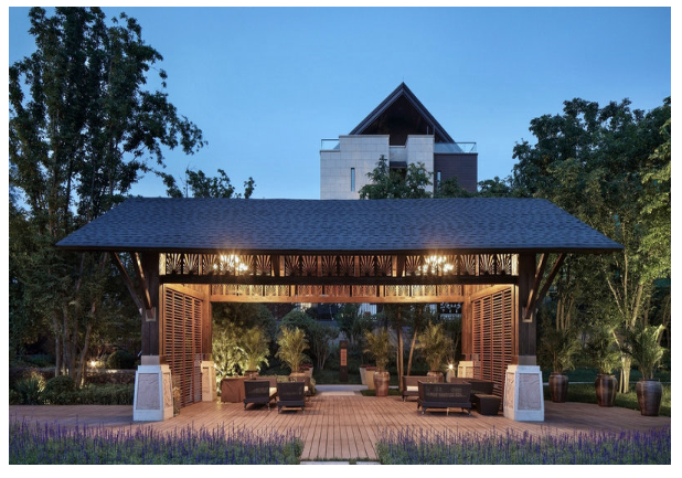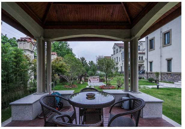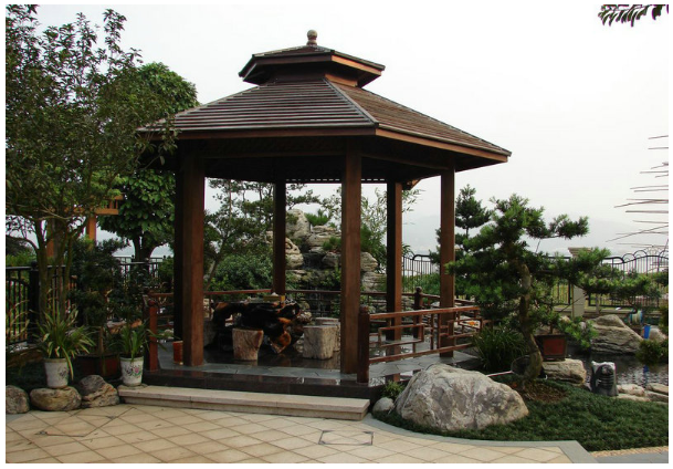 300平別墅有自己的花園來設(shè)計(jì)涼亭。 日式設(shè)計(jì)風(fēng)格使整個(gè)涼亭都展現(xiàn)出精致的風(fēng)格。 六邊形涼亭的底部被抬高到兩步的高度,涼亭的地板上鋪有防滑磚。 石桌和石凳是晚餐后茶的舒適享受。 六根木制立柱承受了整個(gè)涼亭屋頂?shù)闹亓俊?防腐蝕的木柵欄將古老的花卉藝術(shù)融入其中,帶來一些優(yōu)雅氣息。 涼亭周圍設(shè)計(jì)了水系統(tǒng)和假山,以勾勒出一片生機(jī)勃勃和繁榮的景觀。