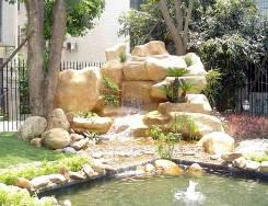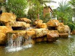 潺潺的流水,水景配以背后高低錯(cuò)落的植 石材凌亂放置,造型不富變化,沒有藝術(shù)