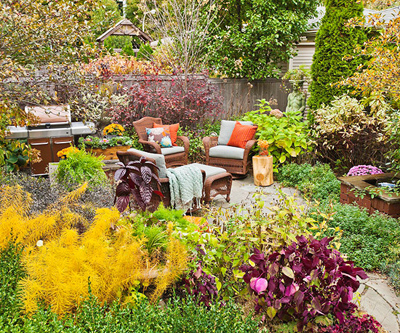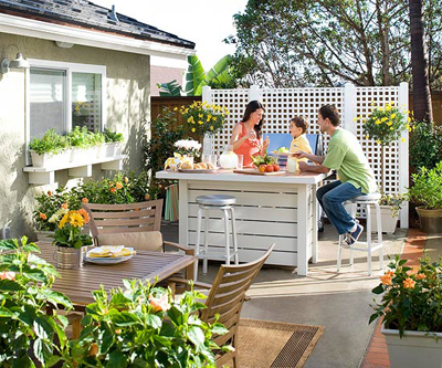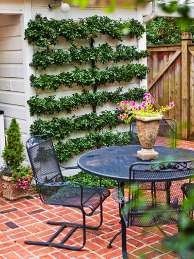 利用高的網(wǎng)格狀物來建立天井周邊的一個(gè)溫和邊界,這是一個(gè)非常不錯(cuò)的方法。如果想為花的成長提供足夠大的生長空間,那要選擇一個(gè)適合的地方,例如在陽光充足的條件下種植葡萄。待葡萄開花之時(shí),迷人的芬芳?xì)馕稉湎蚵啡耍莻€(gè)不錯(cuò)的選擇。