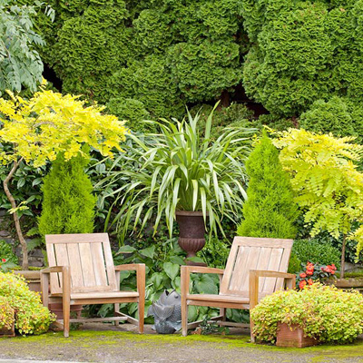 對于天井來說,前院是一個(gè)很特別的地方,但為什么不好好利用這些優(yōu)勢呢?用一些設(shè)計(jì)技巧,可以為你和你的鄰居創(chuàng)造一個(gè)具有小小空間的私人地方。使用中等高度的集裝箱來建立邊界,甚至一個(gè)種植草坪的叢地。