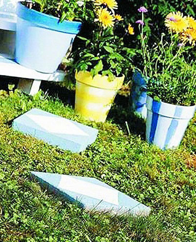 徑鋪裝方法。此例中,對(duì)花盆和水泥磚都進(jìn)行了彩繪處置,實(shí)在是相得益彰的設(shè)計(jì)。
