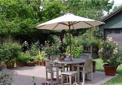 鄉(xiāng)村式花園應(yīng)包含一些私密的場所,可以是一條簡單的長凳和幾株植物,也可以是一個華麗的戶外用餐地,上面搭建一個有藤蔓植物的屋頂,再配上一個較為古典的吊燈。這些私密的場所在房子或遠(yuǎn)或近的地方,用沙礫、鵝卵石或磚塊小道較隨意地連接。