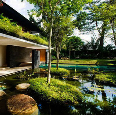 這個(gè)花園設(shè)計(jì)完全呈現(xiàn)出蘇州園林般的意境深遠(yuǎn)的氣質(zhì)。周圍湖水環(huán)繞,綠樹、假石交錯(cuò)其中,呈顯出獨(dú)有的江南問完的韻味。