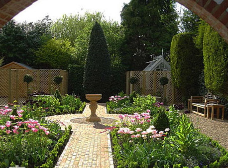 小巧而精致的園林設(shè)計,通過精致的修剪,使整個圖案形成一個整體,十分具有美觀性,起到很好的裝飾效果。